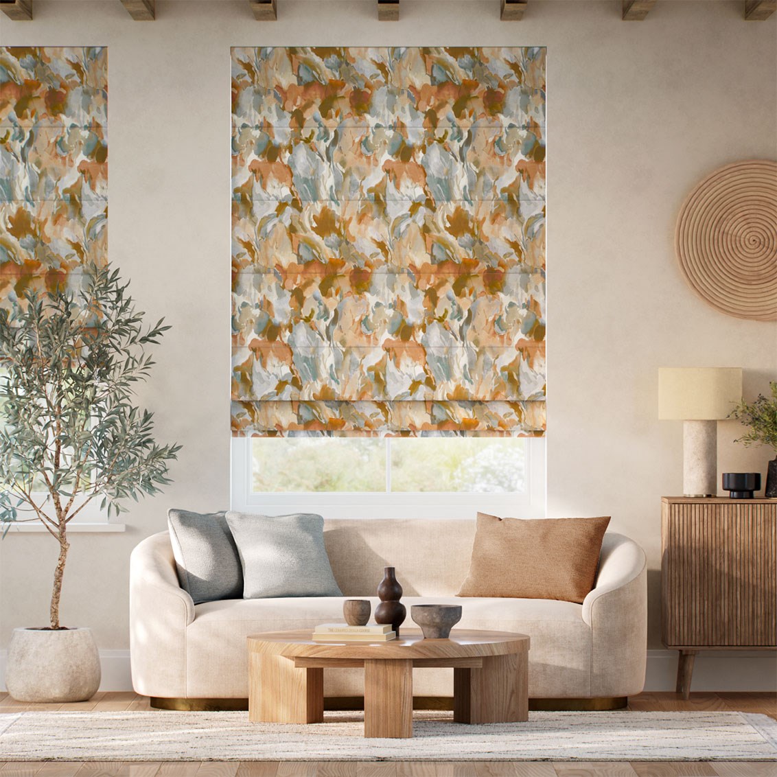 Full of earthly delights, the Foresta Rust Cloud Roman Blind from the Harlequin collection explores beautifully diffused woodland leaves and ore-inspired colours.