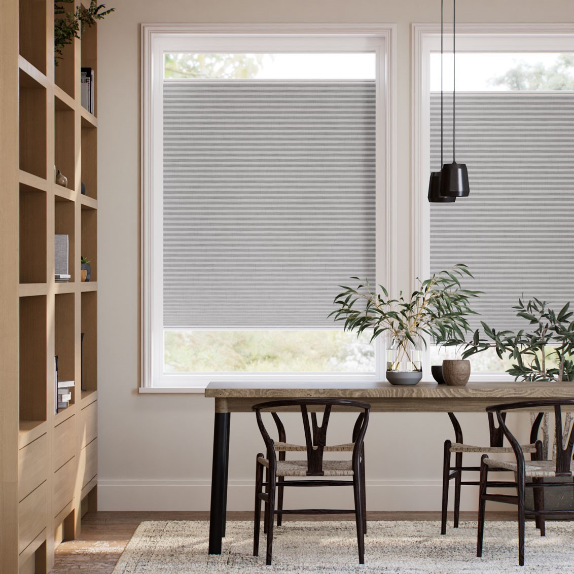Crafted from our advanced honeycomb fabric, it effectively regulates room temperature by trapping air, ensuring comfort in both cold and warm seasons. The blind's aluminium internal lining and external blackout layer offer superior light control and privacy.