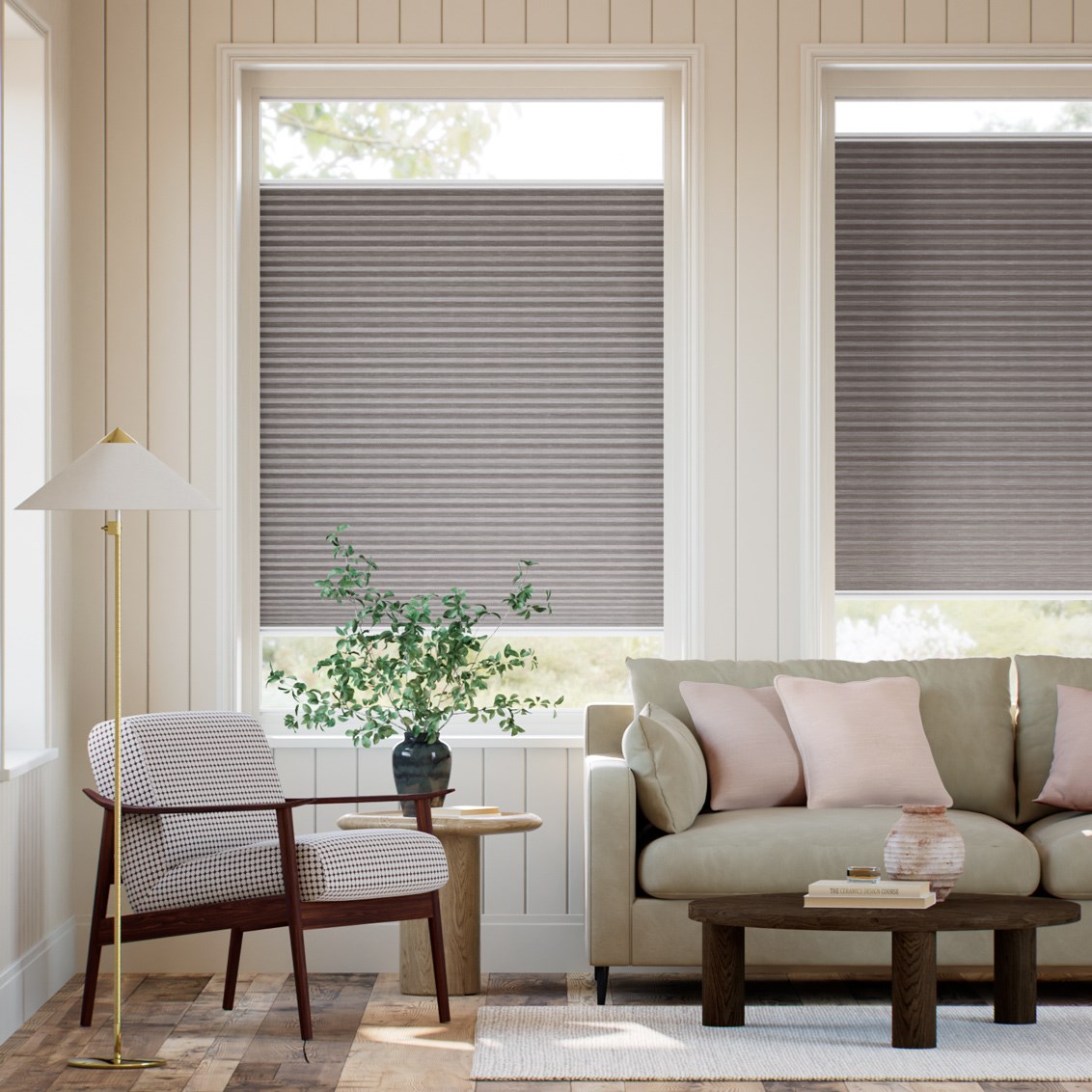 It’s grounding and tactile an ideal companion for warm neutrals and rustic palettes. Designed with blackout fabric and aluminium-lined honeycomb insulation, it’s perfect for conservatories that bask in the sun or rooms that need quiet, cosy shade.